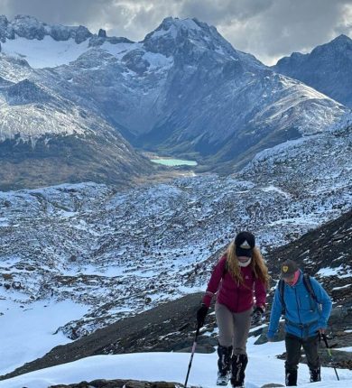 La experiencia con Taun Ushuaia y especialmente con el guía Joaco fue simplemente extraordinaria. Hicimos la travesía de alta montaña hacia el Glaciar Ojo del Albino, un sendero exigente y desafiante, pero gracias a la profesionalidad y el acompañamiento constante de Joaco, se volvió tan seguro como inolvidable.