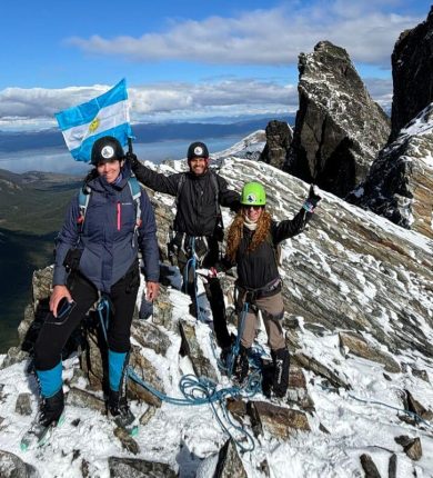 Subimos a la torre norte de uno de los picos emblemáticos que rodean la ciudad de Ushuaia. Ese que miras cuando estás parado en el centro de la ciudad y pensas yo quiero ir allá ARRIBA.Salimos de la ciudad de Ushuaia y en 20 minutos de camioneta llegamos al inicio del trekking. Transitamos a pie diferentes ambientes: Valles, bosques, ríos, pedreros rocosos y terreno de montaña. Nos podemos encontrar con barro, nieve y hielo en alguna parte del sendero.La parte final es la trepada a la torre nos vamos a poner el equipo técnico de escalada y vamos a trepar usando nuestras manos a nuestro alrededor un ambiente imponente de montaña con el Monte Olivia de paisaje y la bahía de Ushuaia, un paisaje sin duda espectacular. Desde la cumbre sentimos la adrenalina de estar vivo y la vista 360 de la cordillera de Los Andes con sus lagunas de montaña y glaciares dan un escenario único. Lo importante no es la cumbre si bien es el objetivo. Lo importante es la confianza con el compañero, la comunicación de como se siente uno en este terreno, disfrutar, hacer amigos y compartir.