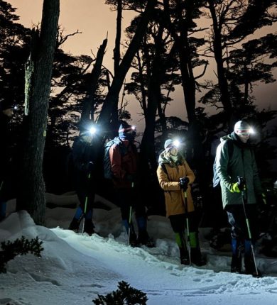 Atravesaremos bosques nativos característicos de nuestras costas, podremos observar el Canal Beagle y llegar a un punto panorámico que te dejará boquiabierto. Una vista impresionante de la ciudad de Ushuaia iluminada, bordeada por las montañas y el Canal Beagle con sus islas.