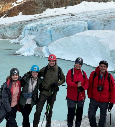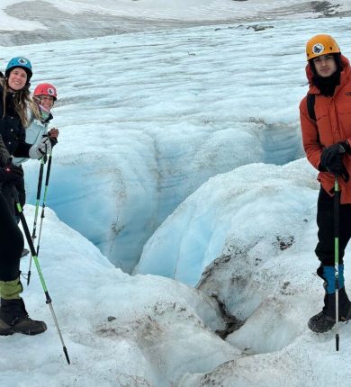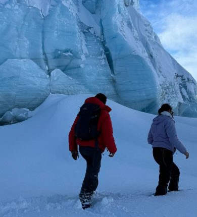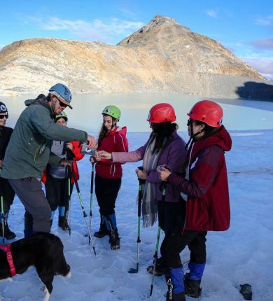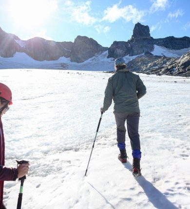 Mini trilha sobre o glaciar: atividade disponível durante a temporada de verão.