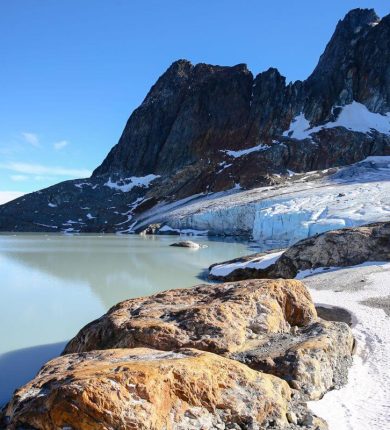 Chegamos! Depois de quatro horas e meia de ritmo constante e intenso, somos surpreendidos pela parede frontal do glaciar com seus 20 metros de altura, sua lagoa verde de degelo e seu ambiente único. Neste trekking, a recompensa pelo esforço está garantida.