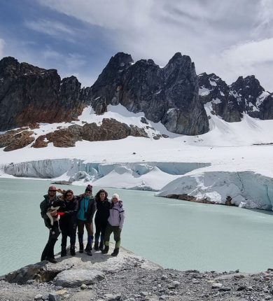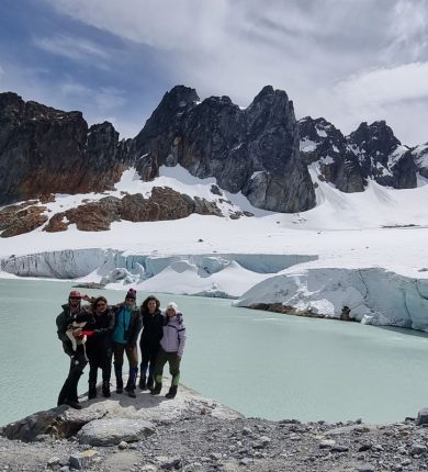 Depois da lagoa, começa a subida; nos afastamos da área da floresta e começamos a escalada por terreno rochoso. Esta é a parte mais exigente, pois a subida continua por cerca de três horas. As montanhas que cercam o lugar são muito imponentes; a Cordilheira dos Andes com seus grandiosos picos nos faz sentir pequenos.